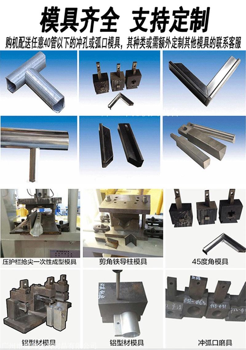 首要应用于:不锈钢钢护栏、锌钢桥上的维护栏杆、公路护栏、阳台栏杆、镀锌围栏、空调护栏、空调架、舞台架、大型畜牧养殖场围栏、防盗窗、防盗网、铝合金门窗、脚手架等管材的冲孔、冲弧。